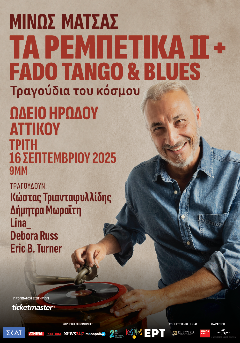 O Μίνως Μάτσας, σε συνέχεια του περσινού sold out, παρουσιάζει την Τρίτη 16 Σεπτεμβρίου 2025 στο Ωδείο Ηρώδου Αττικού τον δεύτερο κύκλο: Τα Ρεμπέτικα II+ Fado Tango & Blues, Τα τραγούδια του κόσμου: οι μουσικές παραδόσεις από διαφορετικό μήκος και πλάτος της γης που εκφράζουν τις ίδιες εμπειρίες και συναισθήματα, τον πόνο, τη φτώχεια, την αγάπη, τον χωρισμό, τη νοσταλγία, τη μοναξιά, τον έρωτα και την ελπίδα. Η μουσική όμως είναι μία. Μας ενώνει, μας δονεί, μας συγκινεί, μας συναρπάζει, από όπου κι αν προέρχεται, αρκεί να έχει αλήθεια.