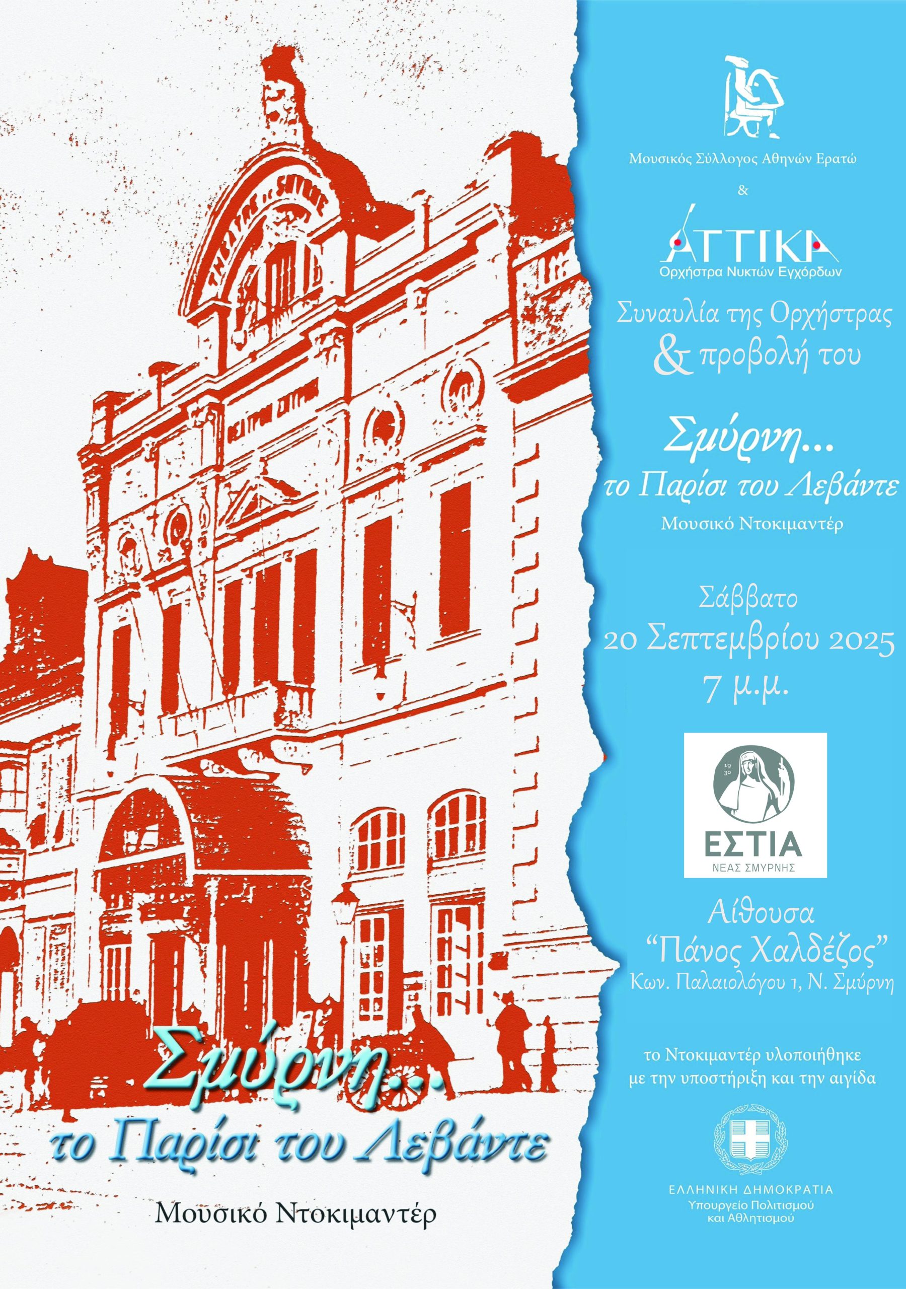– Στη συνέχεια, το μουσικό ντοκιμαντέρ «Σμύρνη… Το Παρίσι του Λεβάντε»