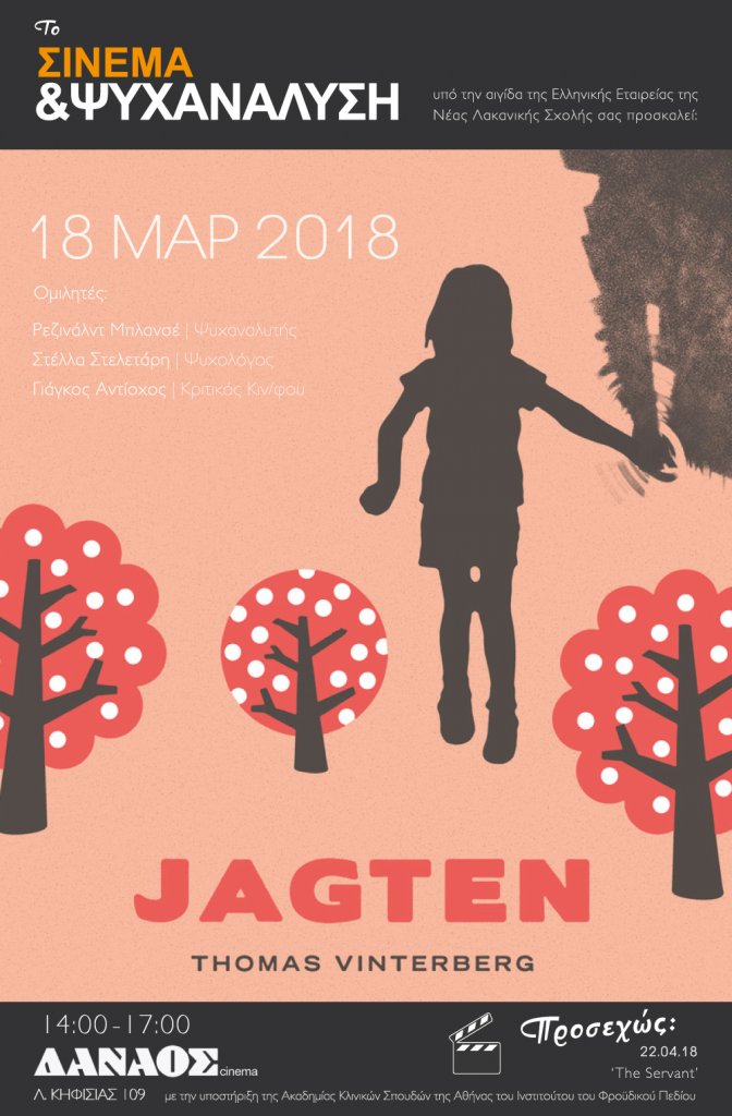 Το “Σινεμά και Ψυχανάλυση”, υπό την αιγίδα της Ελληνικής Εταιρείας της ΝΛΣ και με τη συνεργασία της Ακαδημίας Κλινικών Σπουδών της Αθήνας, σας προσκαλεί στην προβολή της ταινίας “ΤΟ ΚΥΝΗΓΙ” (“JAGTEN”) του THOMAS VINTERBERG. Κυριακή 18 Μαρτίου 2018, ώρα: 14.00-17.00 στον κινηματογράφο “Δαναό” (Λεωφ. Κηφισίας 109, πλησίον μετρό Πανόρμου). Ομιλητές θα είναι οι ακόλουθοι: Ρεζινάλντ Μπλανσέ: Ψυχαναλυτής, Στέλλα Στελετάρη: Ψυχολόγος, Γιάγκος Αντίοχος: […]