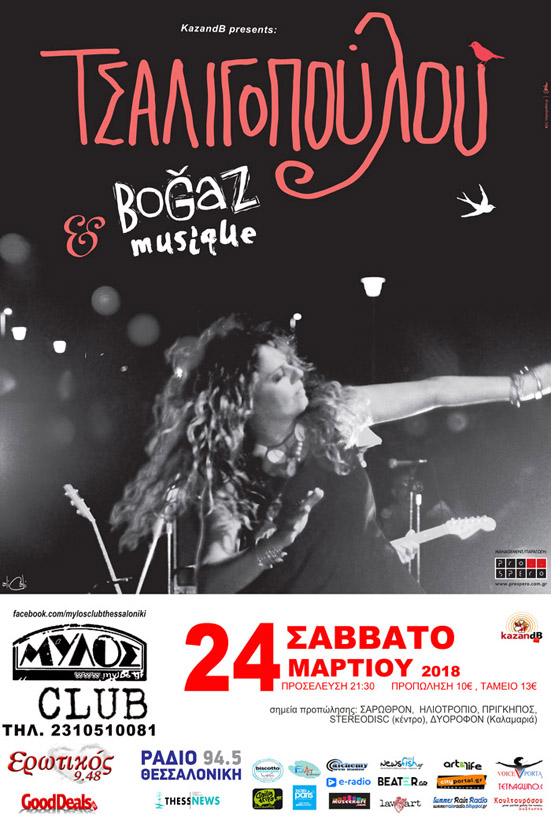 ΕΛΕΝΗ ΤΣΑΛΙΓΟΠΟΥΛΟΥ & Boğaz Musique ΣΑΒΒΑΤΟ 24 ΜΑΡΤΙΟΥ 2018 MYLOS CLUB Μετά την μεγαλη και sold out εμφανιση της, η Ελένης Τσαλιγοπούλου και των Boğaz Musique επιστρέφουν στο club του Μυλου Το Σάββατο 24 Μαρτιου, η Ελένη Τσαλιγοπούλου και οι Boğaz Musique εμφανίζονται στο club του Μύλου και μας προσκαλούν σε μία υπέροχη μουσική γιορτή! […]