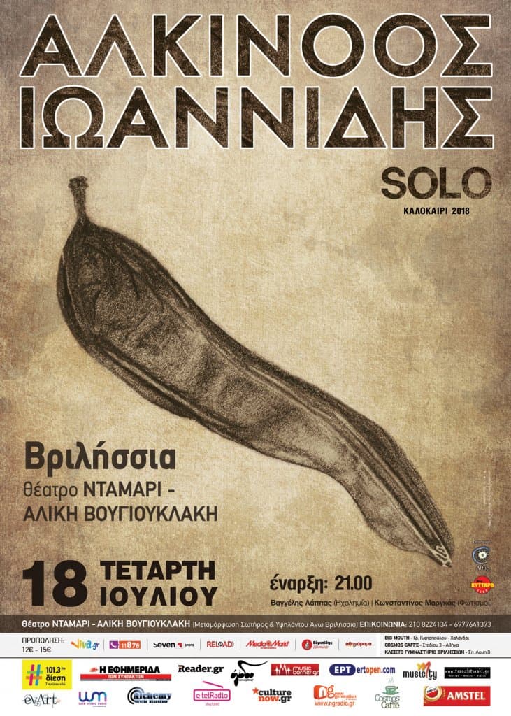 ΑΛΚΙΝΟΟΣ ΙΩΑΝΝΙΔΗΣ Live για πρώτη φορά! στο πανέμορφο Θέατρο «Νταμάρι – Αλίκη Βουγιουκλάκη» στα Βριλήσσια. Ο Αλκίνοος Ιωαννίδης παρουσιάζει φέτος ένα σόλο πρόγραμμα. Μόνος επί σκηνής, παίζει και τραγουδάει τα τραγούδια του στην απλούστερη μορφή τους, μεταφέροντάς μας στη στιγμή της δημιουργίας τους. Ακολουθώντας μια παράδοση αιώνων, αυτή των τροβαδούρων, ταξιδεύει από πόλη […]