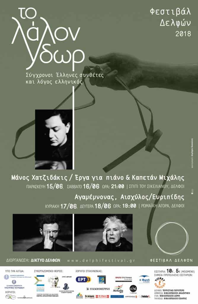 ΦΕΣΤΙΒΑΛ ΔΕΛΦΩΝ 2018 Το λάλον ύδωρ. Σύγχρονοι Έλληνες Συνθέτες και λόγος ελληνικός. 15-30 Ιουνίου & 10-12 Αυγούστου Πρόγραμμα Εκδηλώσεων Παρασκευή 15 & Σάββατο 16|06|2018 ώρα: 21:00 ΣΠΙΤΙ ΤΟΥ ΣΙΚΕΛΙΑΝΟΥ – ΔΕΛΦΟΙ Μάνος Χατζιδάκις / Έργα για πιάνο & Καπετάν Μιχάλης Τα εµβληµατικά πιανιστικά έργα του σπουδαίου Έλληνα συνθέτη Μάνου Χατζιδάκι που παρουσιάστηκαν […]