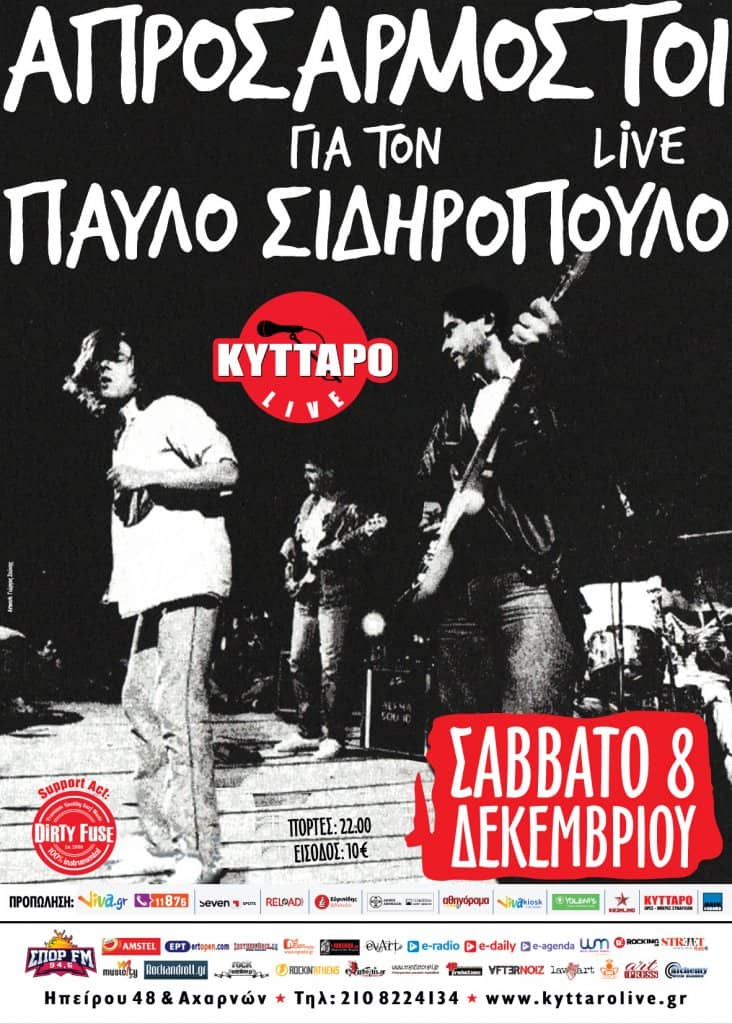 ΣΑΒΒΑΤΟ 8 ΔΕΚΕΜΒΡΙΟΥ 2018 Η αέναη γιορτή για τον ανεπανάληπτο ΠΑΥΛΟ ΣΙΔΗΡΟΠΟΥΛΟ ΑΠΡΟΣΑΡΜΟΣΤΟΙ Live Support Act: DIRTY FUSE https://www.facebook.com/dirtyfuse/ Όπως κάθε Δεκέμβρη, εδώ και 28 χρόνια (!!!) για μια μοναδική φορά, η «οικογένεια» (όπως ο ίδιος είχε χαρακτηρίσει) του Παύλου Σιδηρόπουλου, οι Απροσάρμοστοι (Κυριάκος Δαρίβας: τύμπανα, Οδυσσέας Γαλανάκης: κιθάρα, Αλέκος Αράπης: μπάσο) τα […]
