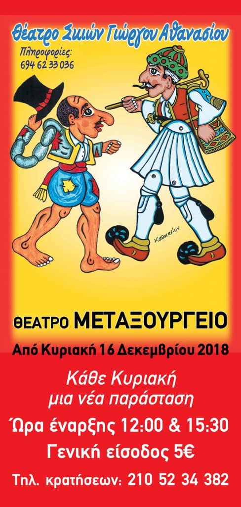 «Καραγκιόζης» στο Θέατρο «Μεταξουργείο» Έναρξη παραστάσεων: Κυριακή 16 Δεκεμβρίου 2018 Μαγευτικές φιγούρες κινούνται πίσω από ένα λευκό τεντωμένο σεντόνι, σε έναν «ημιδιαφανή» μικρόκοσμο, που όμως είναι τόσο διακριτός στις παιδικές ψυχές. Πολύχρωμες και συναρπαστικές «σκιές» έρχονται στο Θέατρο «Μεταξουργείο» για να ξεσηκώσουν μικρούς και μεγάλους, συστήνοντας τον Καραγκιόζη στα παιδιά και θυμίζοντάς τον στους γονείς, […]