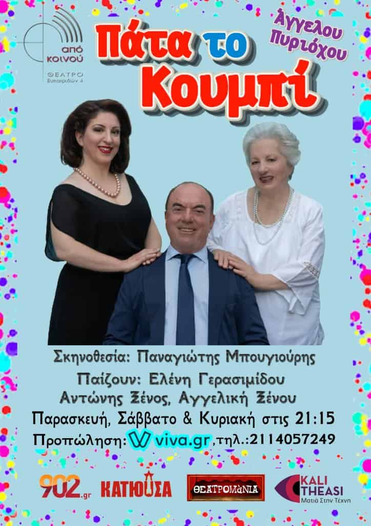 Mετά την καταστροφή του μισού σπιτιού μας, εμείς οι σκληροτράχηλοι πληγέντες της Παλλήνης, επανερχόμαστε δυνατά στο δεύτερο σπίτι μας στο Από Κοινού Θέατρο στο Γκάζι. Για να πάρουμε δύναμη συνεχίζοντας τις παραστάσεις και όλες τις καλλιτεχνικές μας δραστηριότητες καταλήγοντας στη λύση της εργασιοθεραπείας. Σας περιμένουμε ν απολαύσουμε μαζί την ανατρεπτική κωμωδία του Άγγελου Πυριόχου ΠΑΤΑ […]