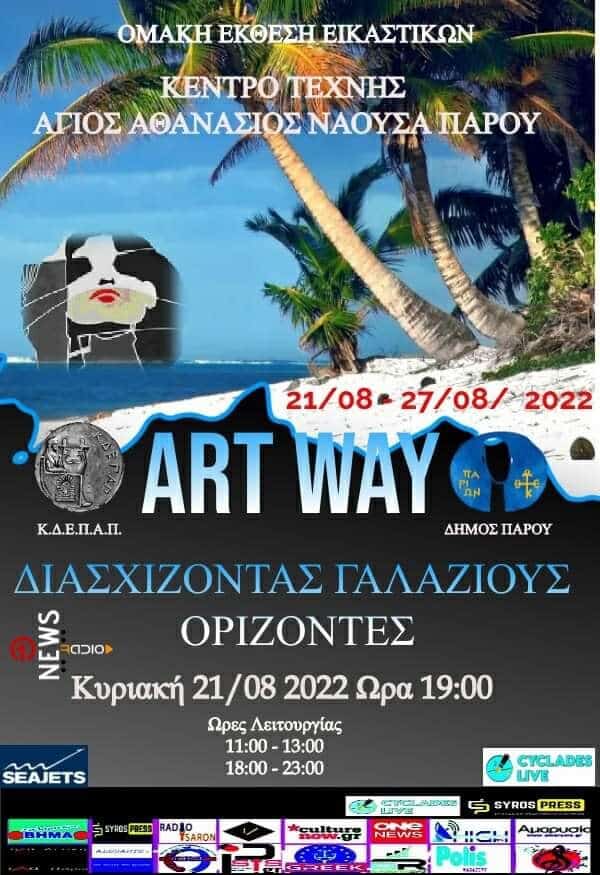 ΚΕΝΤΡΟ ΤΕΧΝΗΣ ΝΑΟΥΣΑΣ ΠΑΡΟΥ (ΑΓΙΟΣ ΑΘΑΝΑΣΙΟΣ) ΚΔΕΠΑΠ & ART WAY μαζί με τις εκδόσεις ΟΣΤΡΙΑ Παρουσιάζουν ΟΜΑΔΙΚΗ ΕΚΘΕΣΗ ΕΙΚΑΣΤΙΚΩΝ ΘΕΜΑ «ΔΙΑΣΧΙΖΟΝΤΑΣ ΓΑΛΑΖΙΟΥΣ ΟΡΙΖΟΝΤΕΣ» 21-27 ΑΥΓΟΥΣΤΟΥ 2022 Ότι αγαπάμε , ότι μας εμπνέει, ότι μας λυτρώνει παρουσιάζεται μέσα από μια ακόμα έκθεση της ART WAY στο νησί της καρδιάς μας. Τα εικαστικά μας καλέσματα συνεχίζονται στην Πάρο του […]
