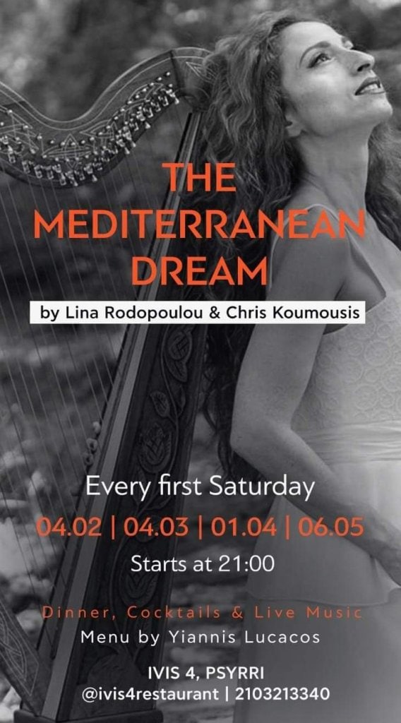 Η Λίνα Ροδοπούλου στο Ivis 4 στο Ψυρρή Σάββατο 4 Φεβρουαρίου Σάββατο 4 Μαρτίου Σάββατο 1 Απριλίου Σάββατο 6 Μαΐου Η Λίνα Ροδοπούλου μας προσκαλεί σε ένα μουσικό ταξίδι γύρω από τη Μεσόγειο για 4 Σαββατόβραδα (το πρώτο Σάββατο κάθε μήνα) στο εστιατόριο Ivis 4 στο Ψυρρή, έναν υπέροχο χώρο με μοναδική […]