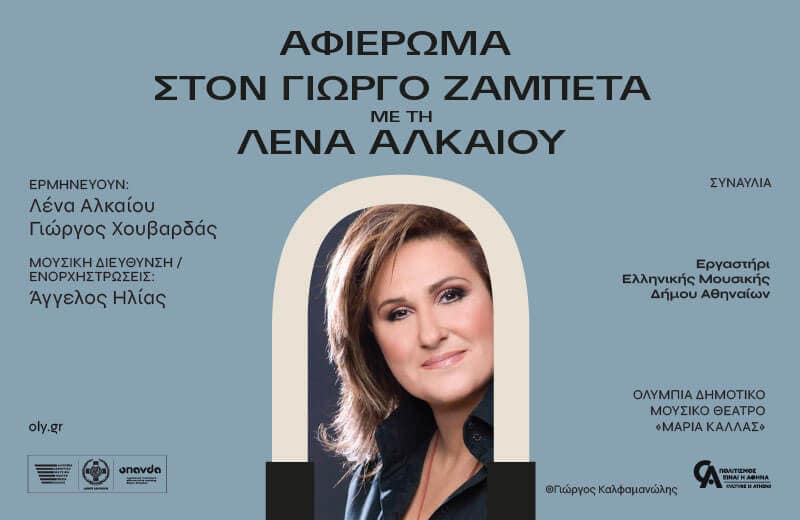 ΣΥΝΑΥΛΙΑ ΑΦΙΕΡΩΜΑ ΣΤΟΝ ΓΙΩΡΓΟ ΖΑΜΠΕΤΑ ΜΕ ΤΗΝ ΛΕΝΑ ΑΛΚΑΙΟΥ Εργαστήρι Ελληνικής Μουσικής Δήμου Αθηναίων ΤΡΙΤΗ 14 ΦΕΒΡΟΥΑΡΙΟΥ στις 20:30 Ανεπιτήδευτος, χιουμορίστας, στιχοπλόκος, δεξιοτέχνης. Ένας πραγματικός «άρχοντας της πιάτσας», ο Γιώργος Ζαμπέτας, τριάντα χρόνια μετά τον θάνατό του, παραμένει στην κοινή συνείδηση ένας θρύλος του ρεμπέτικου και του λαϊκού πενταγράμμου. Στον μουσικοσυνθέτη που μετρά περισσότερα από […]
