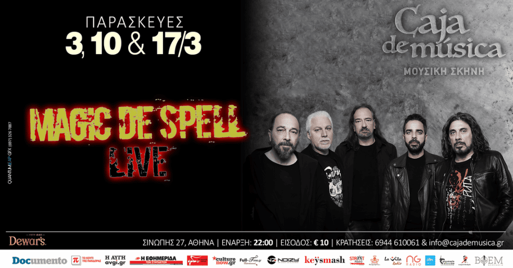 Magic de Spell live Παρασκευή 3, 10 & 17 Μαρτίου στις 22.00 Οι Magic de Spell live, αποτελούν ένα ηλεκτρισμένο rock’n’roll project, που σηματοδοτεί ανατροπές και εκπλήξεις. Δημιουργήθηκαν το 1980, αλλά από τις αρχές των 90’s, καθιερώθηκαν ως γνήσιοι εκφραστές του ελληνόφωνου rock και του κιθαριστικού ήχου. Έχουν στο ενεργητικό τους: -Τέσσερις αγγλόφωνους δίσκους, οκτώ […]