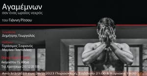 Η παράσταση Αγαμέμνων του Γιάννη Ρίτσου, σε σκηνοθεσία Δημήτρη Γεωργαλά, μετά από ένα κύκλο επιτυχημένων παραστάσεων στο θέατρο Λιθογραφείον της Πάτρας, από τις 3 Φεβρουαρίου, κάθε Παρασκευή, Σάββατο και Κυριακή στο Θέατρο Αλμα, Β΄ σκηνή, για περιορισμένο αριθμό παραστάσεων.