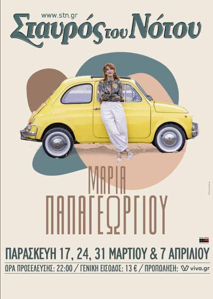 ΜΑΡΙΑ ΠΑΠΑΓΕΩΡΓΙΟΥ Σταυρός του Νότου Κεντρική Σκηνή ΜΙΑ ΕΠΙΠΛΕΟΝ ΠΑΡΑΣΤΑΣΗ: ΠΑΡΑΣΚΕΥΗ 21 ΑΠΡΙΛΙΟΥ Η προπώληση έχει ξεκινήσει! Η επιτυχία των εμφανίσεων της Μαρίας Παπαγεωργίου στην Κεντρική Σκηνή του Σταυρού του Νότου, οι θερμές και ενθουσιώδεις κριτικές για τη νέα της παράσταση και το σταθερά μεγάλο ενδιαφέρον των πολυάριθμων φίλων της, οδηγούν σε μία επιπλέον εμφάνιση, την […]