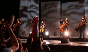 Μια παράσταση όπου οι μόνοι πρωταγωνιστές είναι η μαγική, γήινη φωνή της και 8 τσέλο που την συνοδεύουν σε ένα μοναδικό κοντσέρτο για φωνή και έγχορδα. Όπως λέει η ίδια το τσέλο όχι μόνο είναι κοντά στην ανθρώπινη φωνή αλλά έχει και γυναικείες καμπύλες.