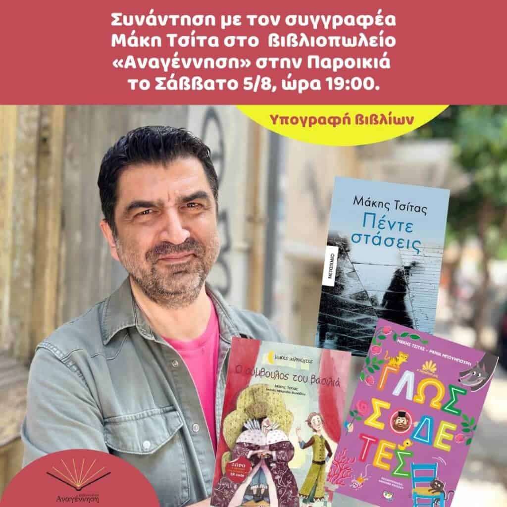 Ο συγγραφέας Μάκης Τσίτας στη Πάρο με τα βιβλία του
